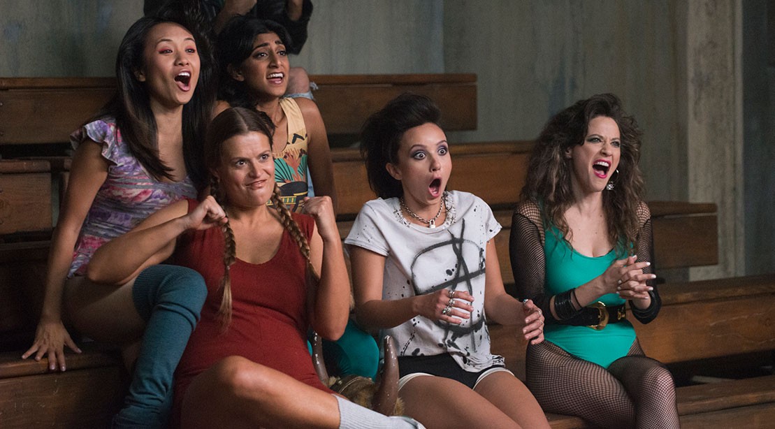 Comedy is a driving force in the project, but the dramatic factor entails interpersonal infighting (things get dodgy once the ladies are ensconced in The Dusty Spur motel) and sleazy doings on the business side of the TV. We get winks of self-effacing humor about the kitsch at the core of the enterprise, such as the ripe use of the Thompson Twins’ “Hold Me Now,” which takes on an entirely new meaning in a ring full of holding, flipping, and stunting hokum. We know we’re not in the ’00s anymore when one of the “ladies” facetiously sums up their director by saying, “Who doesn’t trust a man with a moustache fulla coke?” Those are retro words, shivering and shimmying with alluringly cheap exoticism.