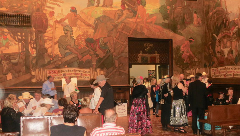 At the 8th Annual Courthouse Legacy Foundation’s Fiesta Party on August 4, a sold-out crowd of 120 members and other supporters mingled and dined in the grand Mural Room at the Santa Barbara County Courthouse. In the Loggia, they had a premier viewing area for watching Flor y Canto and Noches de Ronda being performed in the Sunken Gardens below. This fundraising event helps support the Foundation’s mission of preserving and restoring the magnificent Courthouse.