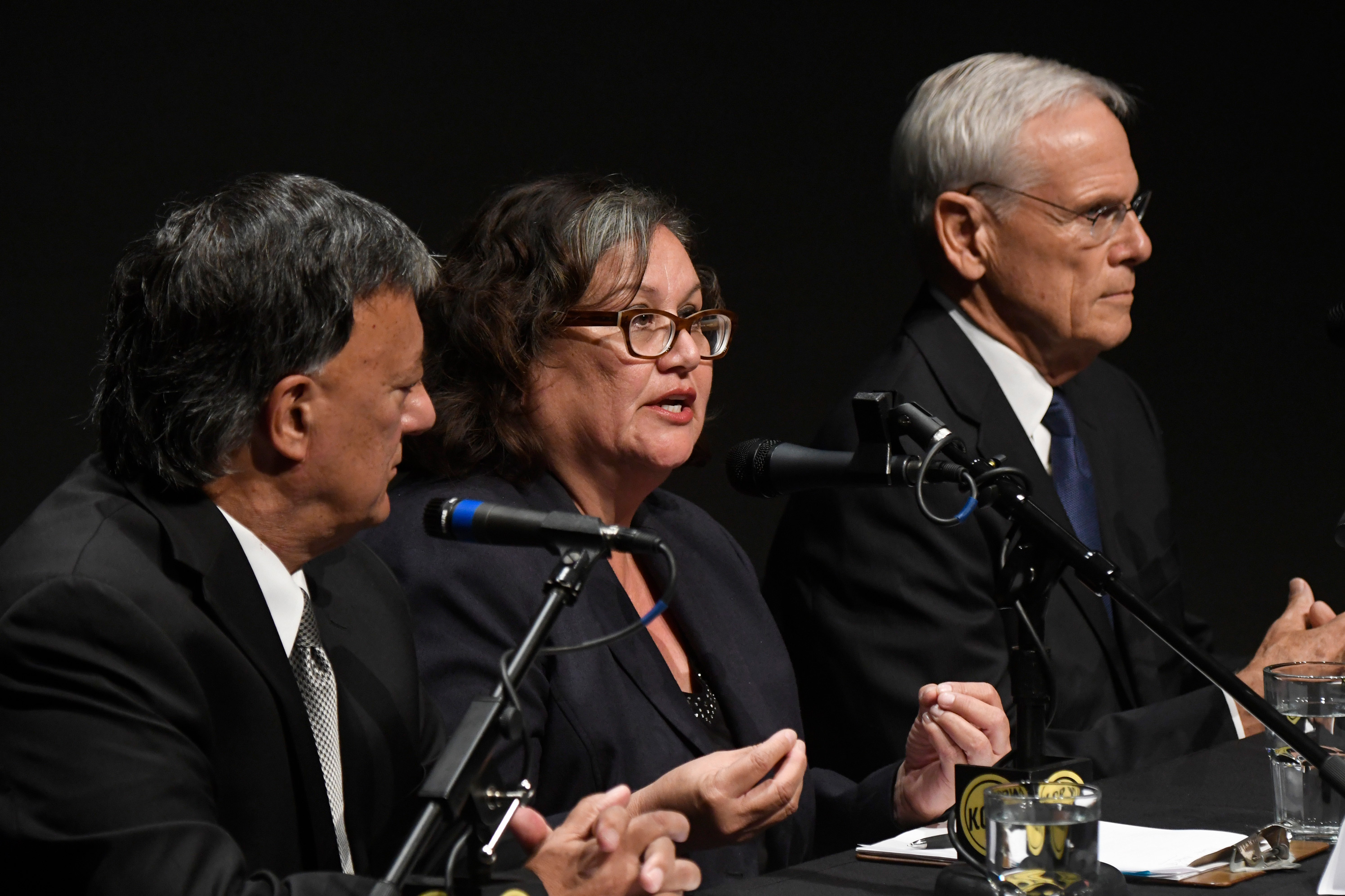 Cathy Murillo, the most ardently progressive member of the council, bristled slightly at Welsh’s question as to whether she may be better politically suited as an advocate rather than a mayor responsible for brokering peace and agreement on the dais. “People knew what they were voting for,” Murillo said of her past two election victories. “People see me as mayoral, Nick.” The audience roared in agreement. Murillo touted her ability to foster regional cooperation and pointed to her work with the police department to encourage intervention over the incarceration of at-risk youth. “I have a friendly personality, and I bring people together to solve problems,” she said.