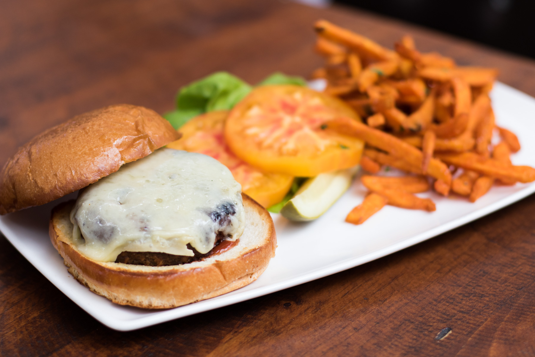 “It’s only fair that a group of friends should all be able to come in and catch up over a few burgers—no matter their diet,” stresses Cogan, as he slides one of his dazzling burgers my way. Slathered in a smoked ketchup and oozing with nutty Gruyère between clouds of buttery brioche, the $12 burger ($14 if you add avocado) is nothing short of perfection. Add to this the sobering fact that it takes almost 2,000 gallons of water to process one pound of beef versus the 250 gallons needed for this patty’s soybeans, and you’d be foolish not to sprint over during lunch to test one out for yourself. “Once you get past the fact that it doesn’t have hooves, it’s delicious,” Cogan assures.