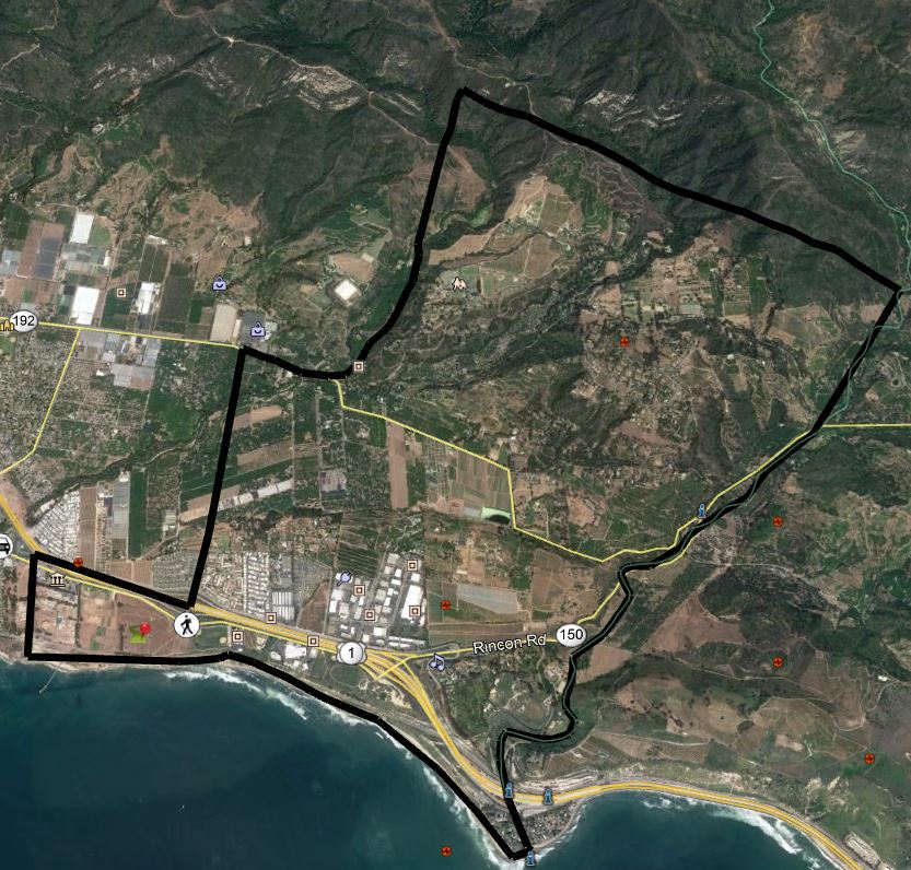 - All areas south of Highway 101 to the coast and east of Dump Road, to include all of the Bates Road and Rincon areas.