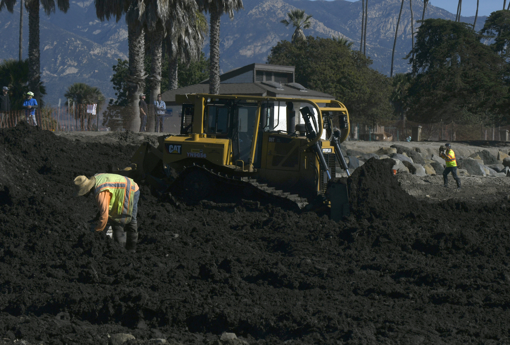 The county’s disposal permit from the U.S. Army Corps of Engineers expires on February 20. Yet according to County Public Works, the river of mud and debris that surged down from the mountains into Montecito left behind more than two million cubic yards of mud and debris. About 400,000 cubic yards of mud and debris trapped in flood-control basins on the major creeks is being trucked to Buellton by the Army Corps. The county has dumped another 50,000 cubic yards from Montecito’s creeks and public roads at the two beaches in Goleta and Carpinteria.