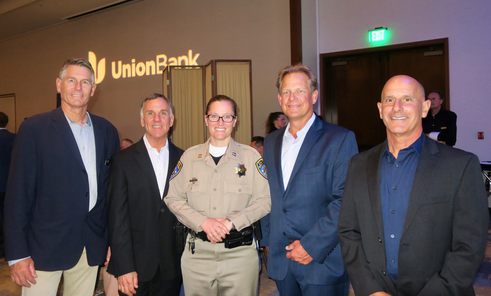 During the reception, guests mingled in the Rotunda at what has become known as the premier networking event of the year. In the Grand Ballroom, Event Co-chairs Arnold Brier and Renee Grubb welcomed the guests. A special Local Heroes Award was presented to area first responders for their efforts during the Thomas Fire and 1/9 Debris Flow. In accepting the award, Santa Barbara County Fire Captain Dave Zaniboni explained how in the wake of the debris flow, first responders performed hundreds of land-based rescues in addition to 131 helicopter rescues, 26 of which were very dangerous hoist operations. Of those 26, 25 were transported to Cottage Hospital with life-threatening injuries and all survived. He thanked everyone for the staggering outpouring of support.