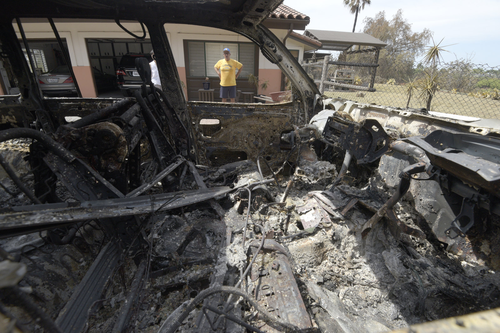 “Do you want to buy a car?” Larry Sleep joked on Monday morning, as he looked at the burned-out shell of his Toyota Land Cruiser, parked within yards of his home, which was still standing on North Fairview Avenue. His wife, Ruth Sleep, was busy cleaning the ash from her kitchen tools. All the succulents around the home looked like they’d melted from the Holiday Fire’s heat on Friday night, but the Sleeps had escaped to a friend’s home. The next morning, Larry said he saw his home in an aerial shot of North Fairview: “It was the most beautiful sight.”