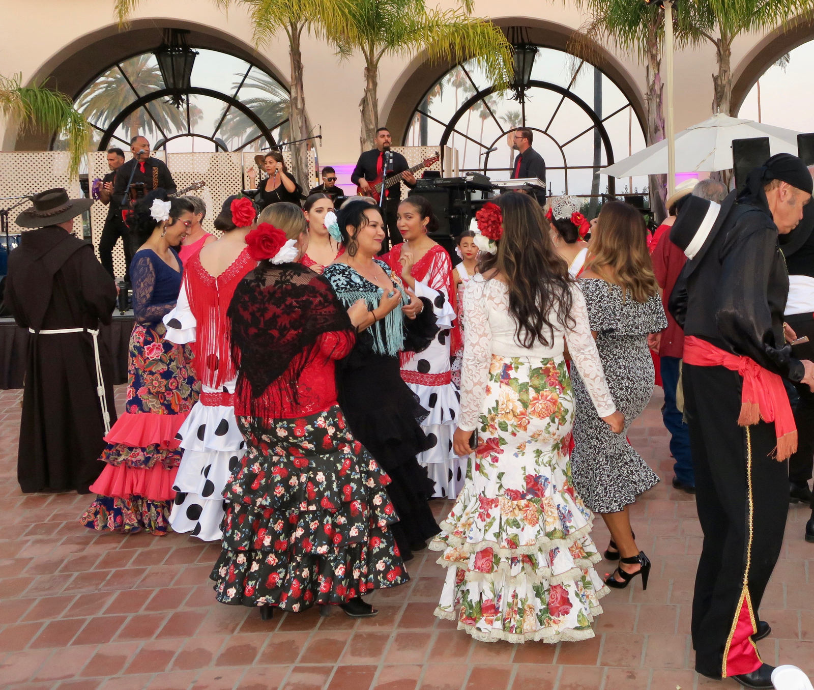 Guests clad in colorful formal Fiesta attire mingled during the cocktail hour in the grand Plaza del Sol while Mariachi Isla Vista entertained. They enjoyed Mexican appetizers and a tasty buffet dinner.