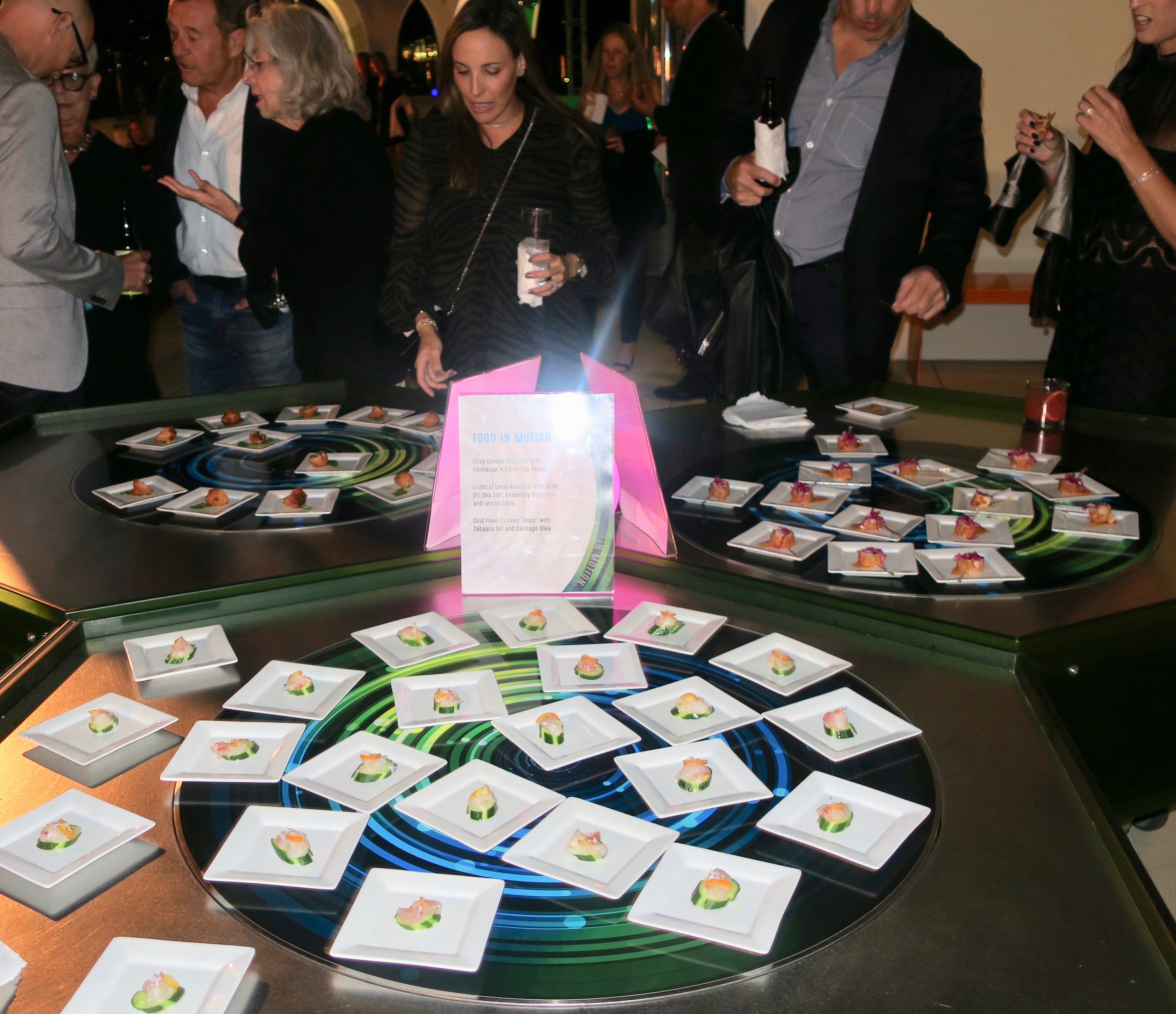 The 300 stylishly dressed guests of all (adult) ages enjoyed passed appetizers on the first floor, a buffet dinner on the second, and more appetizers on the third, amusingly offered on spinning trays in keeping with the event’s “In Motion” theme.