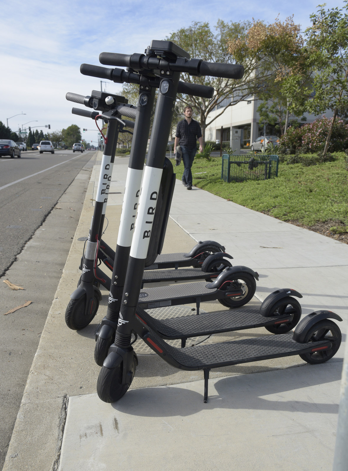 Kasdin, who raised the urgency ordinance at the October 16 council meeting, called the companies’ operating method a “classic bureaucratic thing. You take action and apologize later.” The scooters are prevalent at the Marketplace, which isn’t far from Isla Vista and their target customers, but they’re also showing up along Calle Real and in Old Town. “It isn’t that there are so many,” Kasdin said, “but the sidewalks are so narrow, and the scooters are inappropriately left in the way, making it difficult to get around them.”
