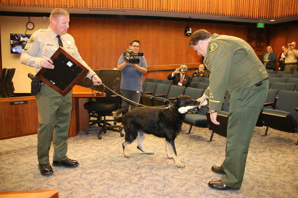 Born in Germany in 2010, Aco Vom Brachtpetal was trained at the Inglis Police Dog Academy in Ventura County. He landed in Santa Barbara in February 2010, gifted to the Sheriff’s Office by a private donor. According to the Sheriff’s Office, its K9 unit is supported in part by Project Deputy Dog, a fundraising effort launched by the office’s Benevolent Posse. For more information, visit sbsheriffsposse.org.