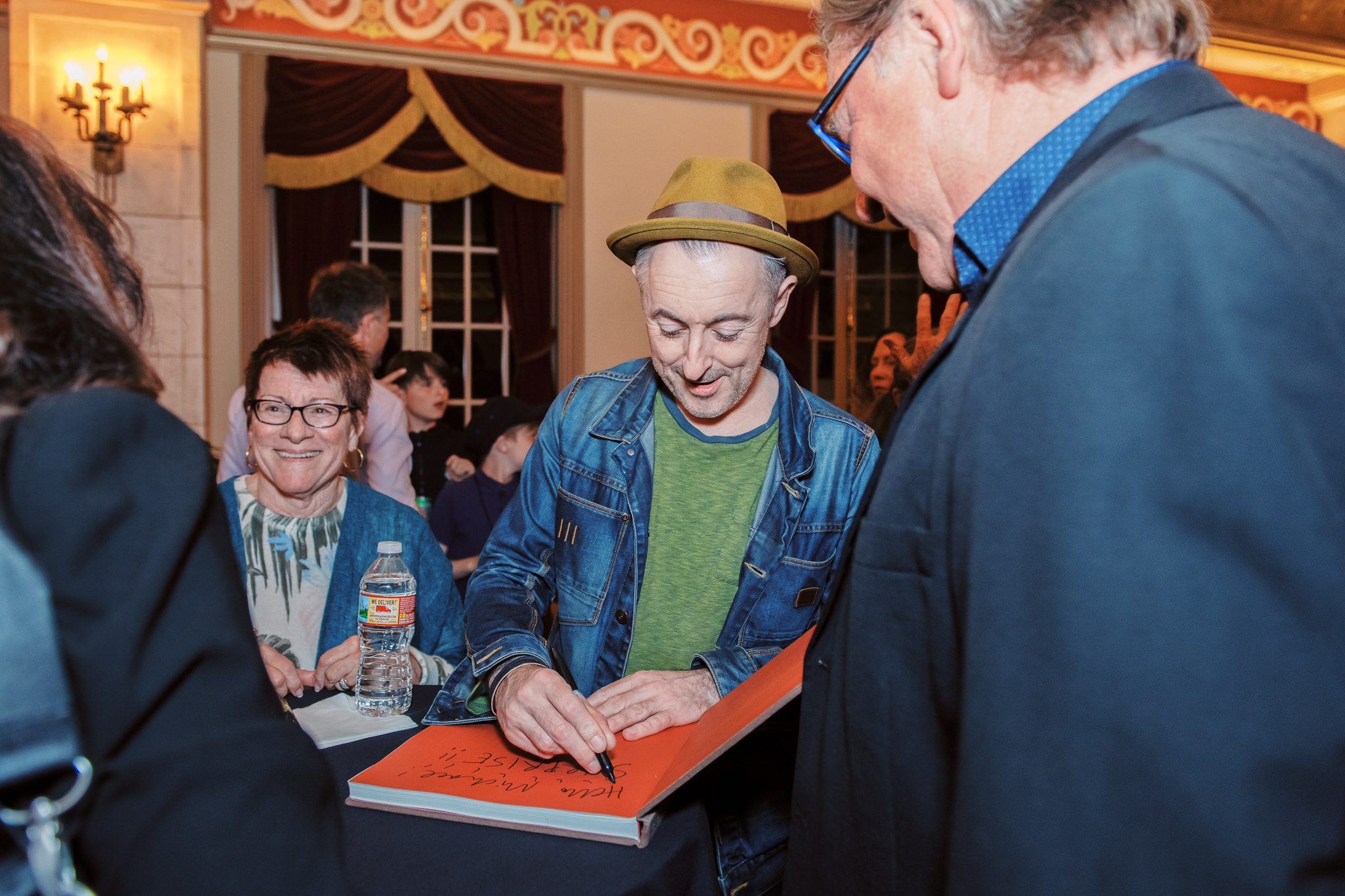 A&L Leadership Circle member Susan Worster gets a book signed by Alan Cumming.