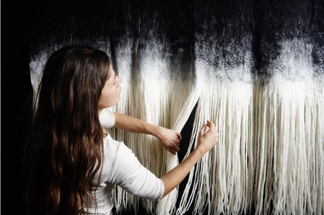 For Santa Barbara native Taiana Giefer, the access to top designers provided by her early career as a fashion model led to an abrupt but lasting shift from making clothes look good to making good-looking clothes. In 2009, Calvin Klein and his head designer, Francisco Costa, saw a small swatch of hand-crafted fabric that Giefer had made in a felting workshop while visiting relatives in Germany. With less than a week before his upcoming runway show, Klein decided that he would use Giefer’s felting as a featured element in that season’s collection. This spur-of-the-moment decision would have a profound impact on the young woman’s life, both in the short and the long run. Several sleepless nights of hard work later, the material was on the models, the models were on the 2009 fall CK RTW runway, and soon the photos of Giefer’s work were in top fashion magazines and on influential social media sites. Within a month, she was flooded with orders from high-end boutiques and luxury department stores for what would become her line of scarves. Other high-profile collaborations would follow, including collections with Helmut Lang and Rick Owens.