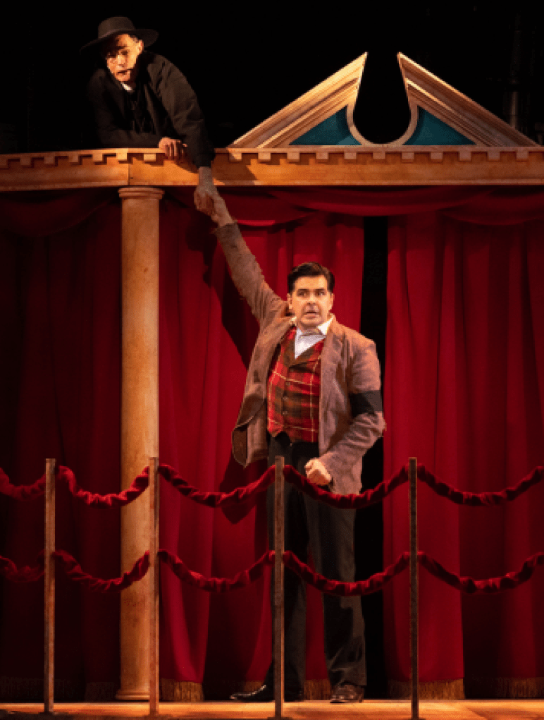 The talented actors deliver the Tony Award–winning play’s clever dialog and droll songs — “I Don’t Understand the Poor,” “Why Are All the D’Ysquiths Dying,” and “Poison in My Pocket,” for example — with aplomb, eliciting consistent laughter from theatergoers. Walker’s nimble comedy skills made him an excellent Monty, and Emily Trask’s turn as Sibella was first-rate. But the biggest kudos go to Philpot, who deftly played all of the D’Ysquiths, which included a vegetarian bodybuilder, an unmarried social-climbing woman of a “certain age,” a country squire, and a drunken clergyman.