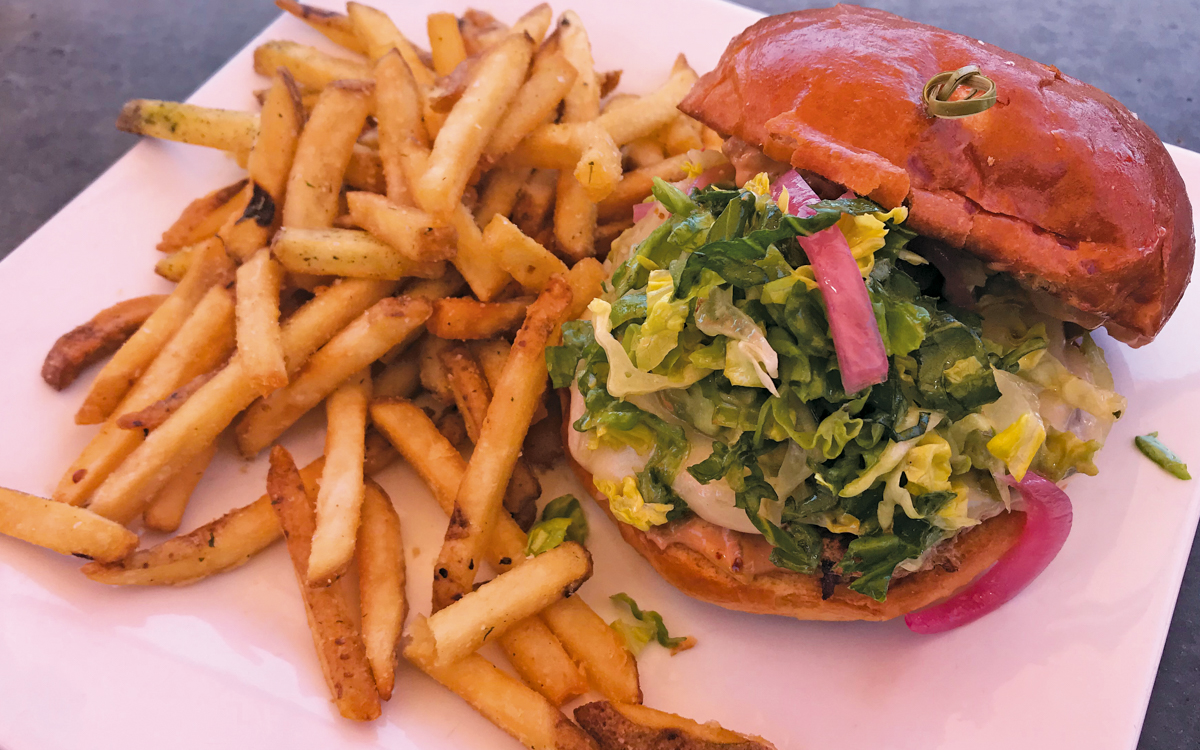 This tasty take begins with a juicy beef patty topped with melted cheddar and thick-cut bacon and sandwiched between an ethereal brioche bun from Baker’s Table in Santa Ynez. The bottom bun is slathered in a savory garlic aioli, which perfectly complements the top condiment and star of the show: house-made tomato marmalade. Made with fresh seasonal tomatoes, it’s the perfect hit of brightness for this rich burger and easily finds that comfortable resting place between tangy and sweet. Going back to regular old ketchup will prove challenging after trying this delectable upgrade.