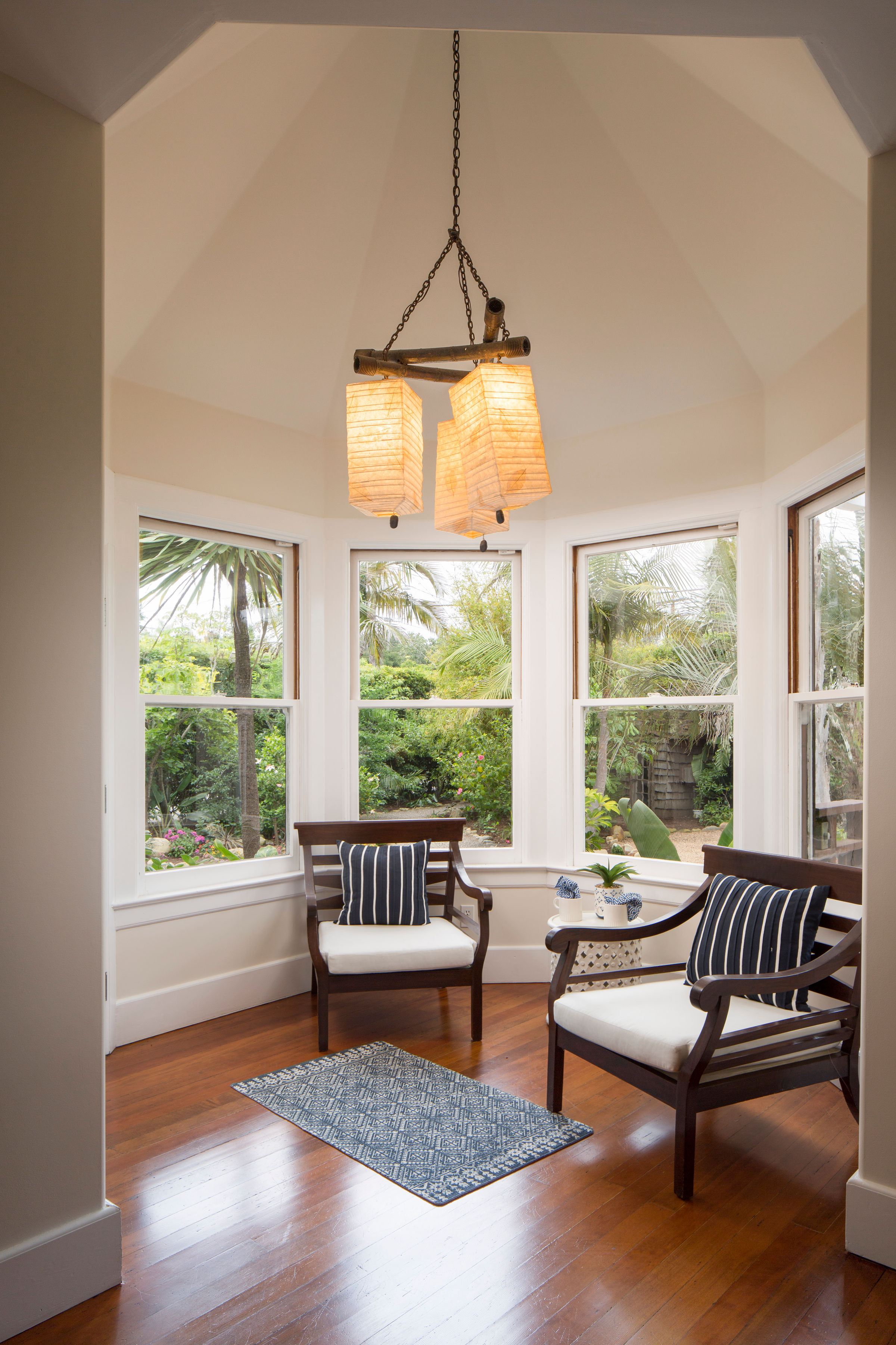 An octagonal dining nook at the front of the house sits under one of the turrets that caught my eye on the way in. An almost identical room on the other side of the house serves as a sitting room in the master suite, providing welcome extra space in an unexpectedly charming shape.