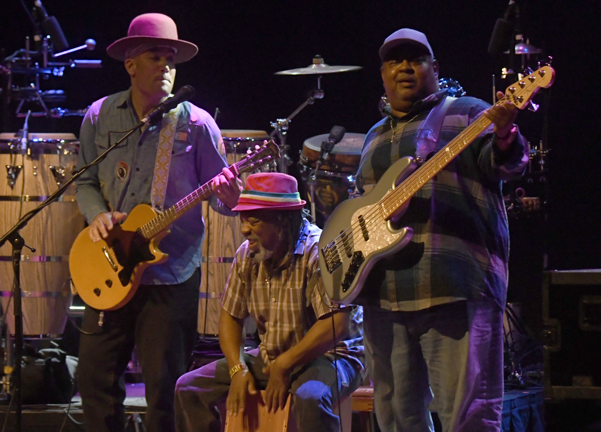 He flexed his soul-man chops on Stevie Wonder’s “Superstitious,” and bassist Juan Nelson did justice to Hendrix’s/Band of Gypsys’ “Them Changes,” shortly after a feisty, rat-a-tat version of Hendrix’s “Machine Gun.”