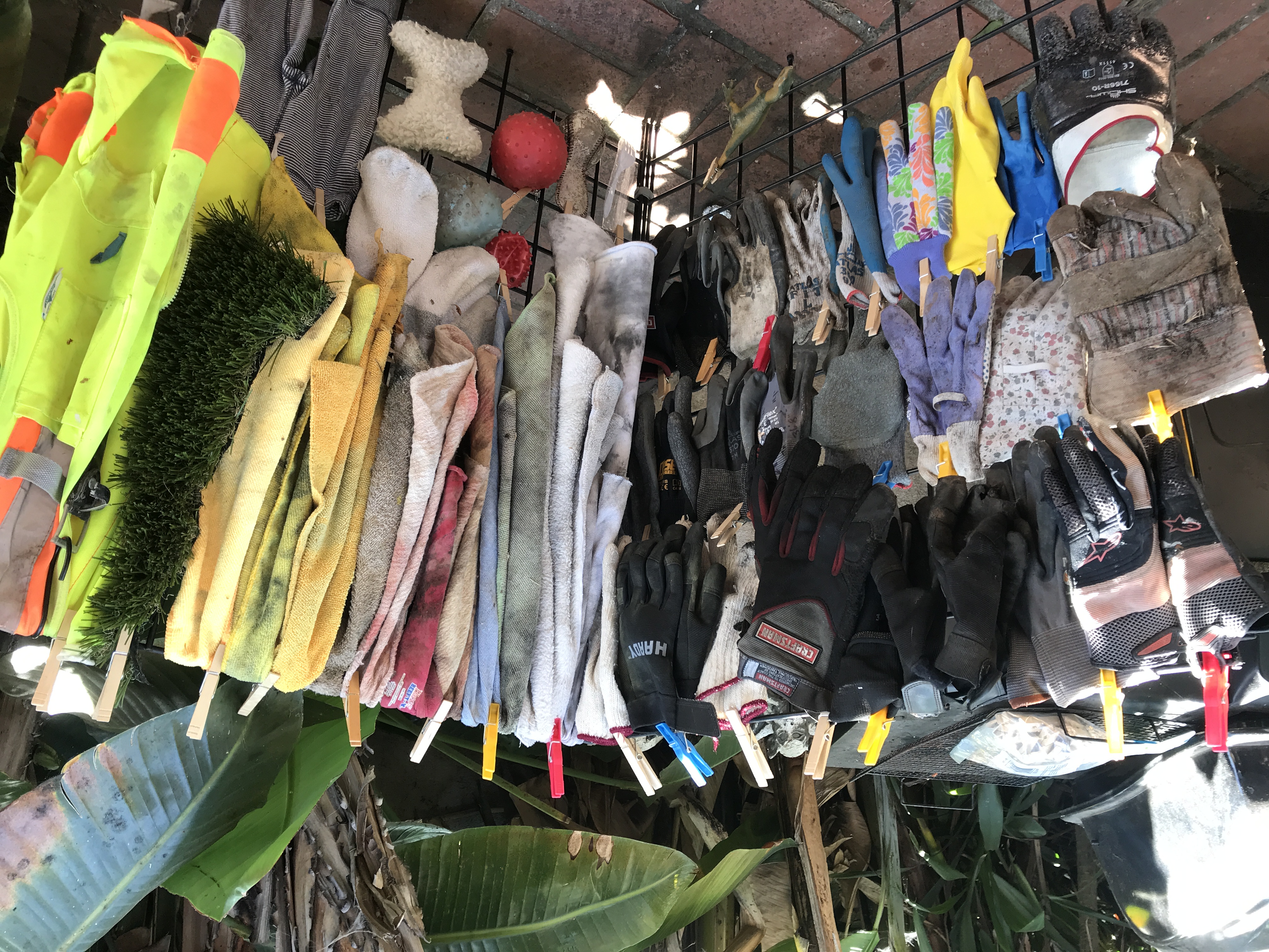 Recently, out of the blue, Geston began noticing objects appearing in her backyard. Mostly gardening gloves. She thought maybe the neighbor kids were throwing them over the fence. “Little did I know, it was the beginning of Juno’s kleptomania adventures!” she said.