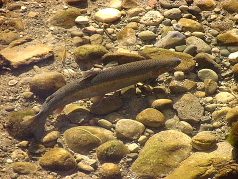 Steelhead are behaviorally complex creatures. They’re born in river tributaries and go out to sea upon adolescence. When they return — and they always return up the same stream from which they came, guided by the scent of the water— their body mass is significantly larger. Returning females lay three times as many eggs as females who remain landlocked and never make the trip. Landlocked steelhead are genetically identical but are known simply as rainbow trout.