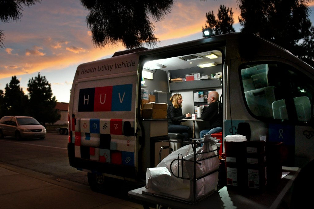 at Pacific Pride’s needle exchange program van in Lompoc on Tuesday.