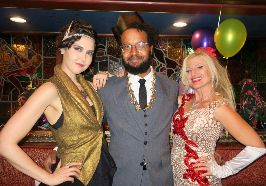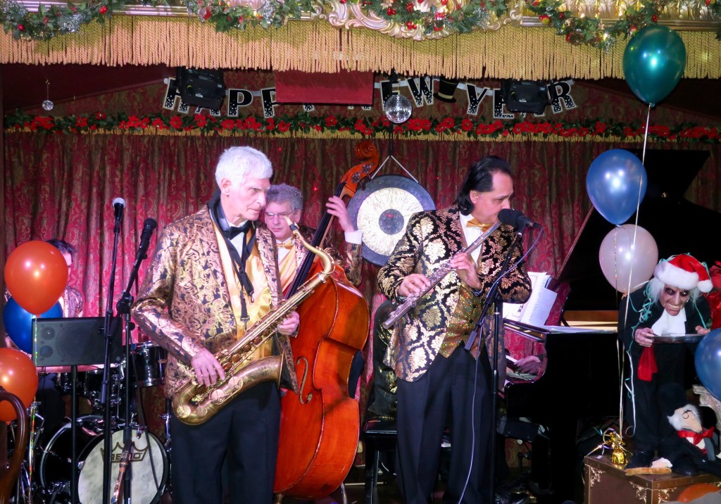 There were plenty of gourmet treats from Chef Michael Hutchings and champagne flowing throughout the venue, but the real treat was all the entertainment. The Cabaret Rhythm Kings played for the first few hours and at the stroke of the New York New Year (9 pm), a dozen members of La Boheme Dance Group effervescently poured into the lounge and graced guests with their joyously unrestrained dance, doing several fun, celebratory numbers.