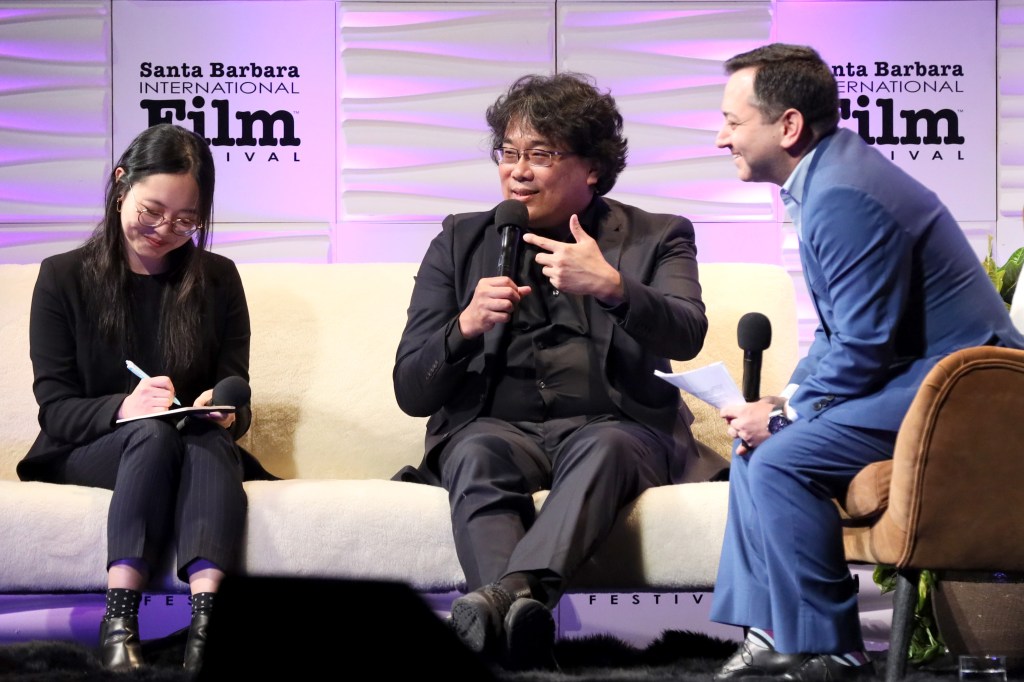 Pulling back to an overview on his current, suddenly starry fate, Bong offered that, “Ever since I got here to Santa Barbara, I’ve been thinking about whether I am actually outstanding,” mentioning the stellar career of one of his heroes, Martin Scorsese, who is a quarter century older than the Korean director. (Earlier, Bong pointed out that both he and Scorsese are great fans of the 1960 Korean film The Housekeeper, cited as an influence on Parasite). “I will try my best to be a truly outstanding director in the next 25 years to come.”