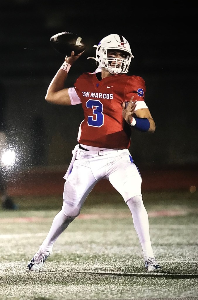 It took some time for Partee to land on the radar of college coaches, as he didn’t participate in the college camp circuit and never had a private quarterback instructor until after his senior season of football was over. In essence, Partee reached the next level the old-fashioned way, developing under the tutelage of San Marcos High head coach Jason Fowle, who has a background playing quarterback and coaching the position. In the end, Partee’s skill set and game film were undeniable.