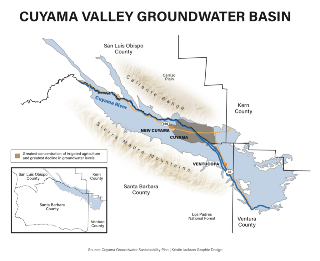 The state Department of Water Resources is accepting public comment on the Cuyama Valley groundwater sustainability plan until April 15. The Cuyama basin is one of 21 groundwater basins in California and the only one in Santa Barbara County to be listed by the state as in critical overdraft. Most are in the Central Valley.