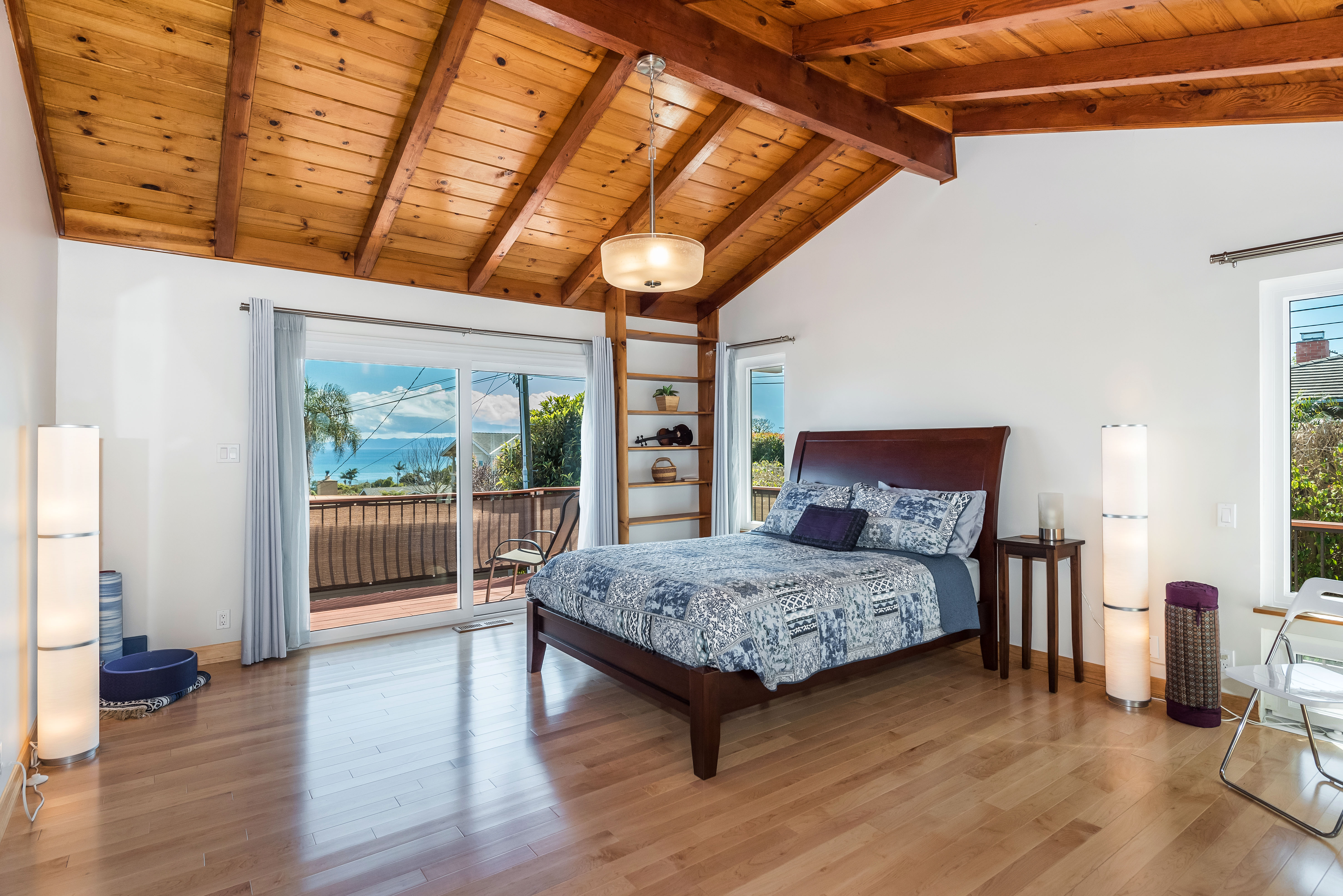 A) This home is only 2 blocks from Shoreline Drive on the ultra-popular Mesa. It’s set back off the street on a quiet and large flag lot offering amazing ocean and island views, and tons of gorgeous palm tree views as well! Offering over 2,500 sq ft and 6 bedrooms, this spacious house provides several floor-plan options.