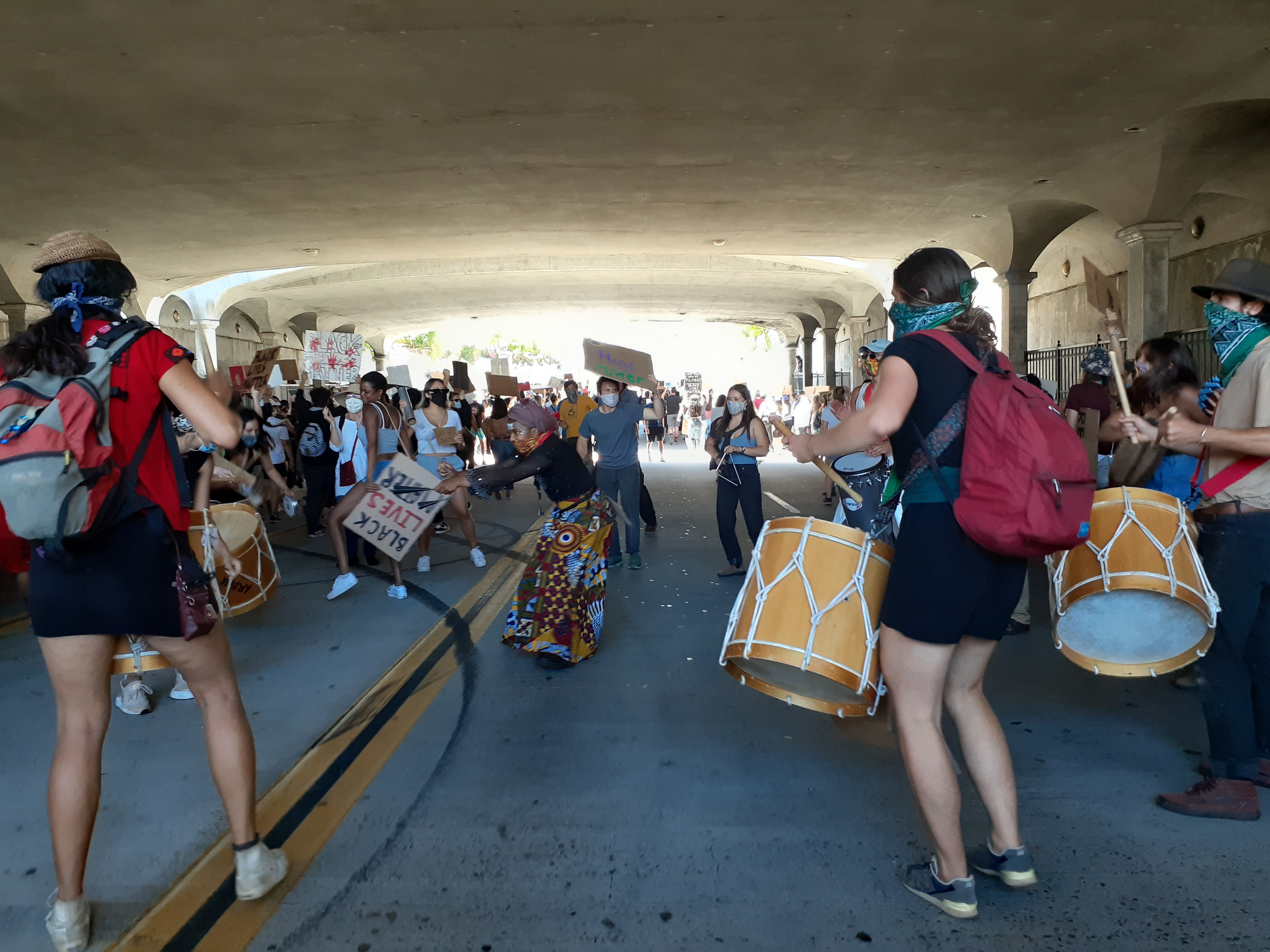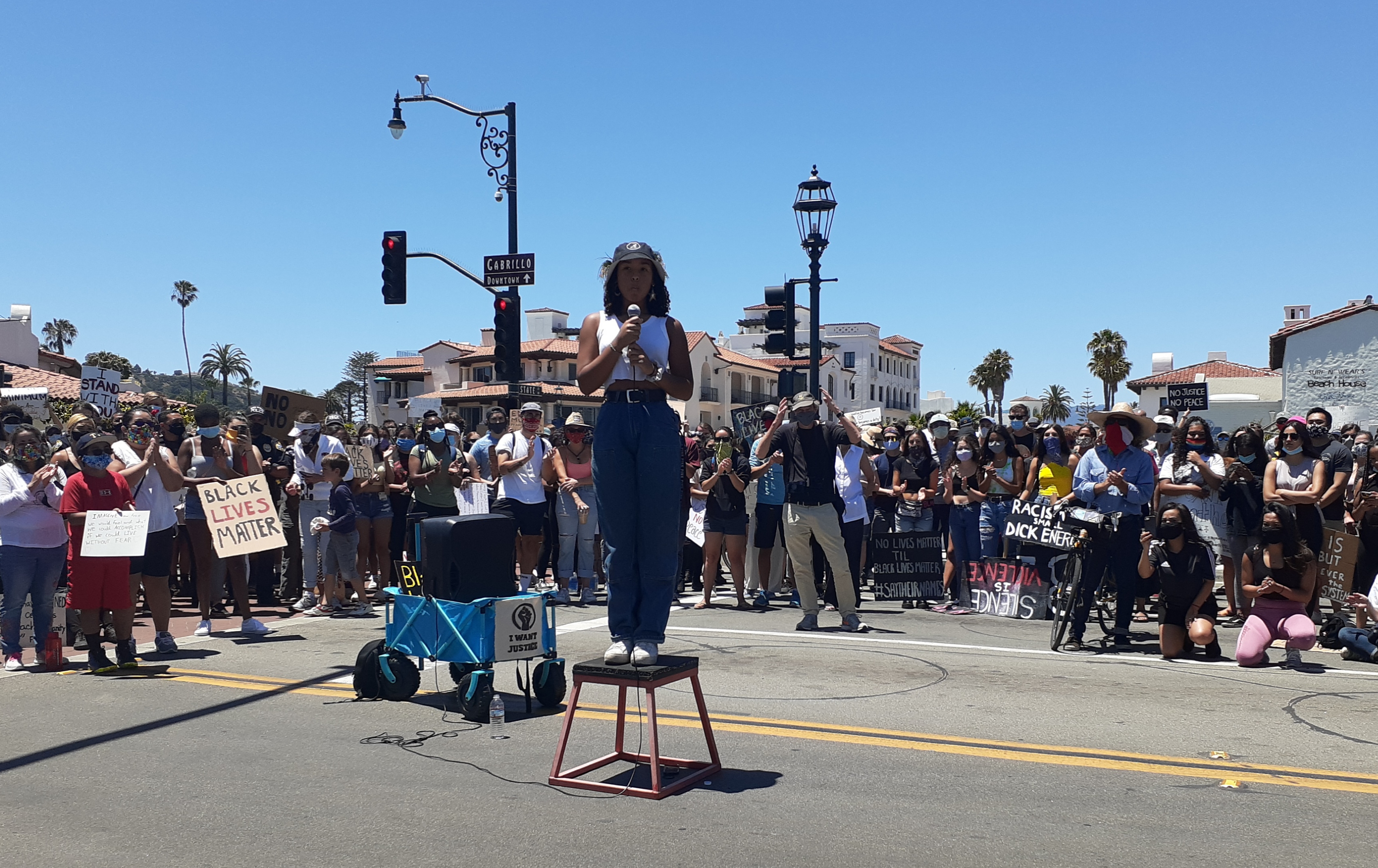 The rally began Sunday afternoon with nearly two hours of song, dance, and speeches at the Stearns Wharf intersection. Though backed by the local Black Lives Matter chapter, the organizers on Sunday were members of local high school black student unions.