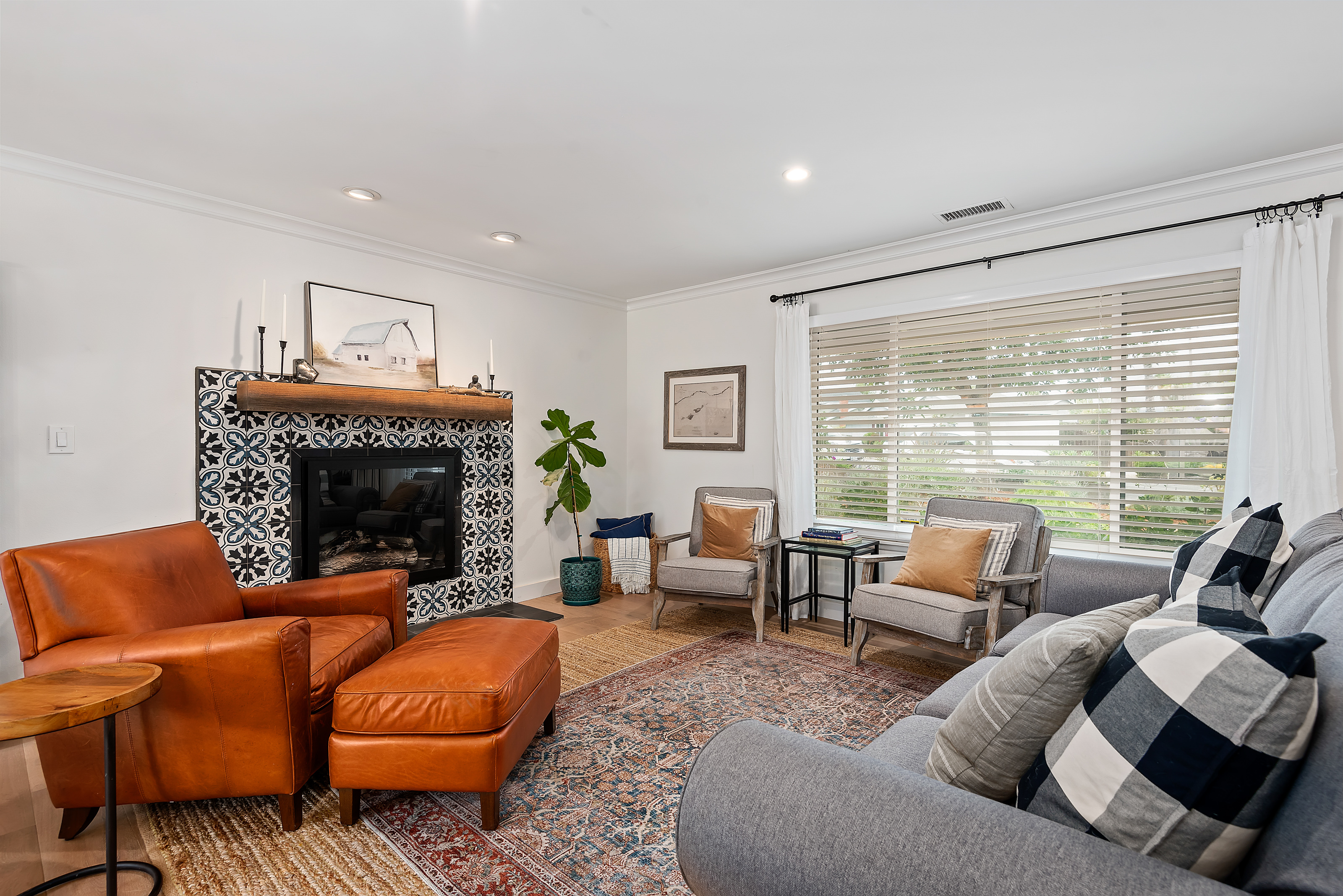 from the pages of Sunset magazine; filled with grace, charm, and offering stunning mountain views. In addition to the three bedrooms upstairs, there is a large separate den/family room/office on the ground floor with a full bath, offering flexible floorplan, in-law quarters, or work-from-home options.