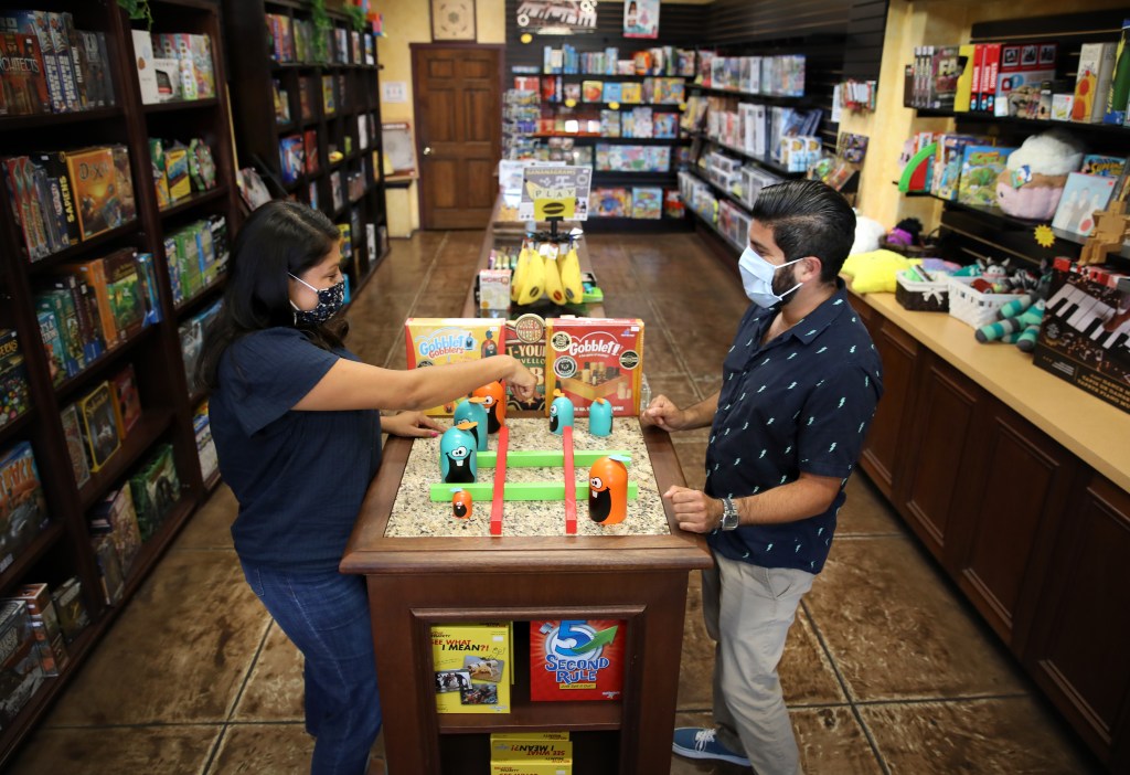 “I always tell everyone it was fate that I bought the store,” Lino mused. “I mean, it was completely random that I had lunch with [the former owner Lisa Gerr] that day. When she told me that she was selling Game Seeker, I knew that was my chance.” Estrella, an engineer at a small startup in Goleta, had a chunk of savings that could serve as a down payment, but convincing him to put it in a board-game store was another hurdle altogether. “I told him you could invest in a company you don’t know, or you could invest it in us, in our future,” Ingrid smiled. “And it worked!”