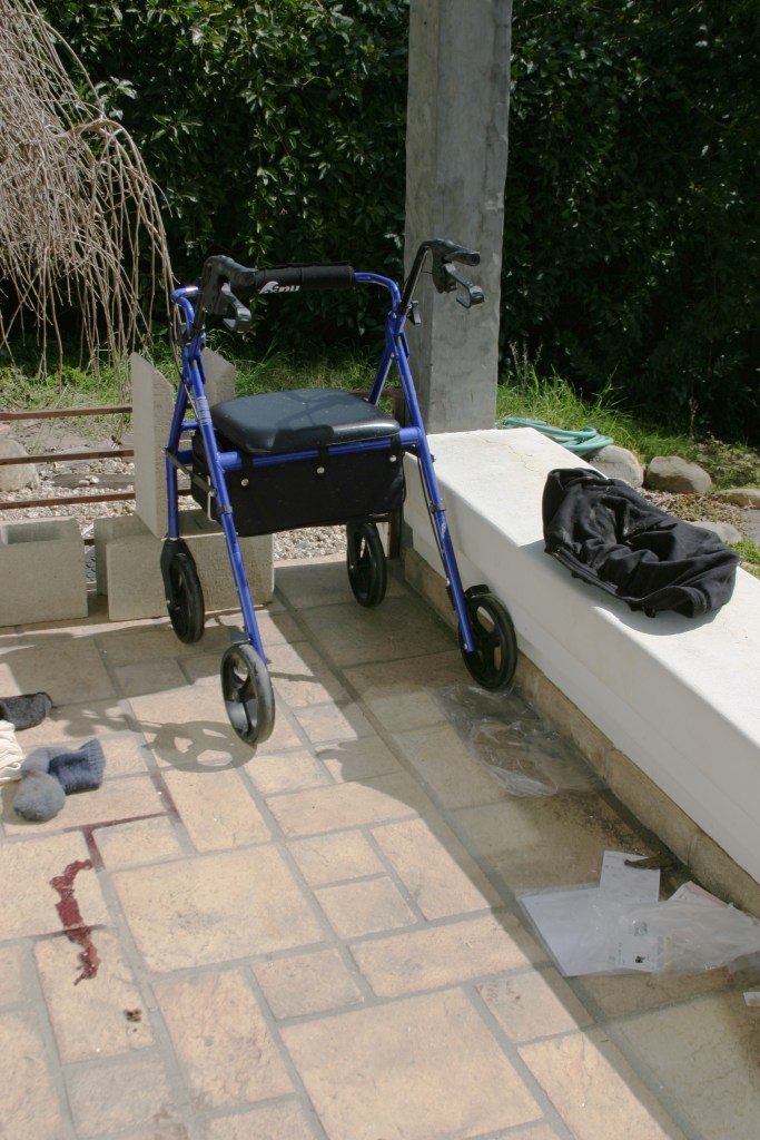 Rogers was supposed to watch the front of the house, but he left his post, walked along a side path to the backyard, and suddenly confronted Donald, who was standing at his walker on a small bedroom patio. He was holding a small silver pistol.