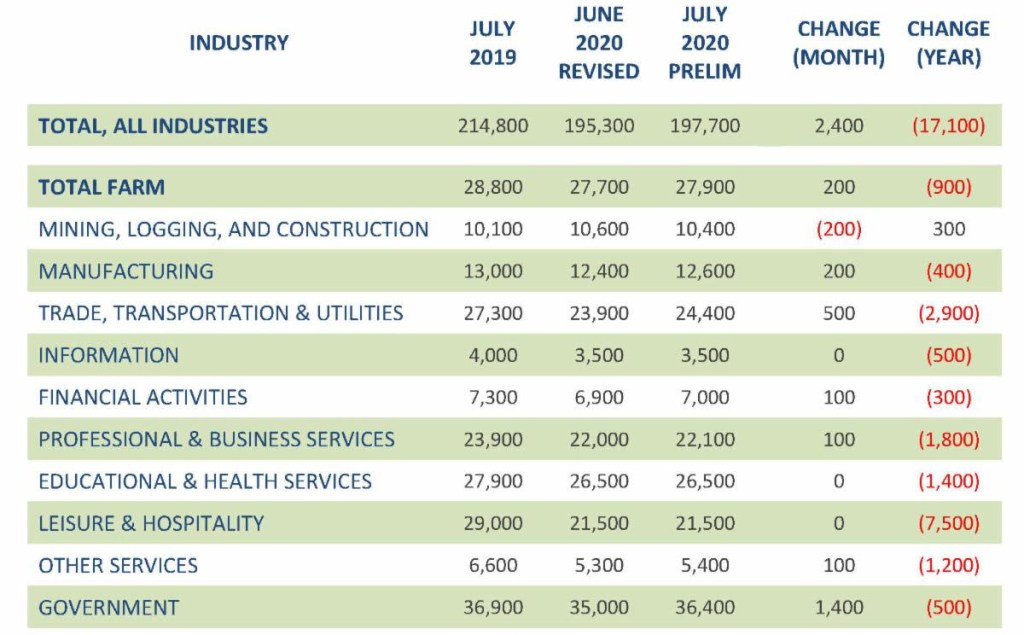In Santa Barbara, the July unemployment rate of 10 percent was an improvement over the 11.5 percent for June, and employment rose by about 4,800 people. But the 21,400 people out of work that month are a drastic reflection of the effect of coronavirus on Santa Barbarans’ lives.