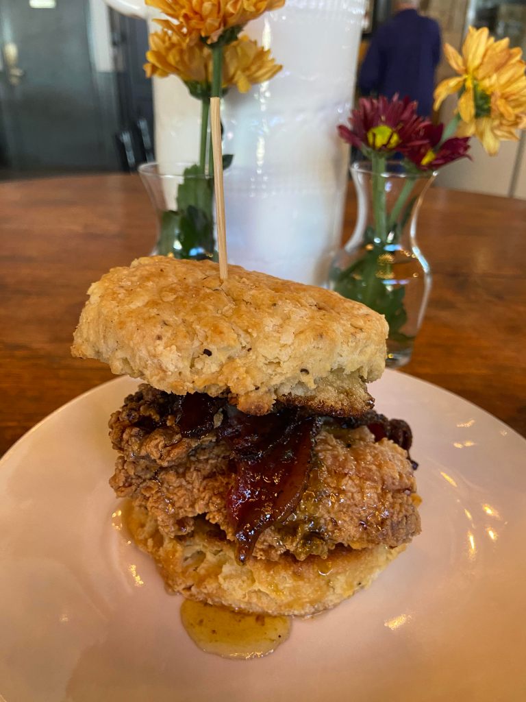 HELENA AVENUE BAKERY: To boost your morning mood, try Helena Avenue Bakery’s fried chicken breakfast sandwich. “An authentic Southern approach, which takes me directly back to my Texan roots,” said Chef Jason Paluska of what sets it apart. “I have family in Tyler, Texas, and this is how it’s done properly.” Every ingredient is meticulously sourced, from the Wayne Farms chicken thighs to the jalapeño pepper jam and California wildflower honey finish. With black-pepper bacon nestled inside a warm, buttery biscuit, this breakfast dish may have you thinking you’re still in a dream. For the night owls, The Lark next door features Chef de Cuisine Logan Jones’s sophisticated yet playful Southern fried chicken dish with Calabrian chili oil, bread-and-butter pickles, and smoked date caramel.