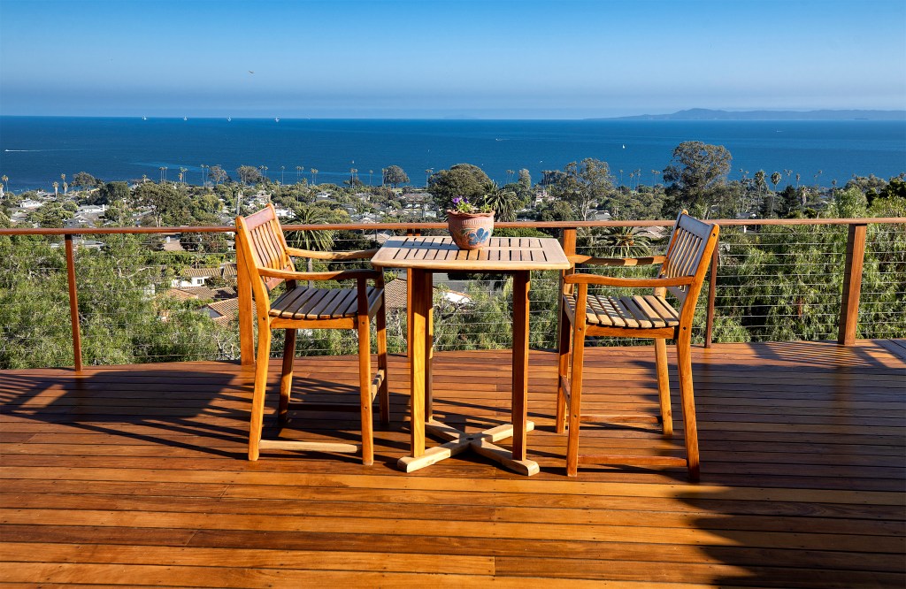 There’s no way one can walk inside without pausing to drink in the ocean scenery, and the house anticipates that need. A Brazilian hardwood deck runs the length of the house and offers plenty of room for entertaining and soaking in both the sun and the view. It’s like the best view deck on Del Playa all grown up, or a Costa Rican tree house plopped onto a Santa Barbara hilltop: blissfully beachy, with an airy castle-above-it-all vantage point that quite literally can’t be surpassed.