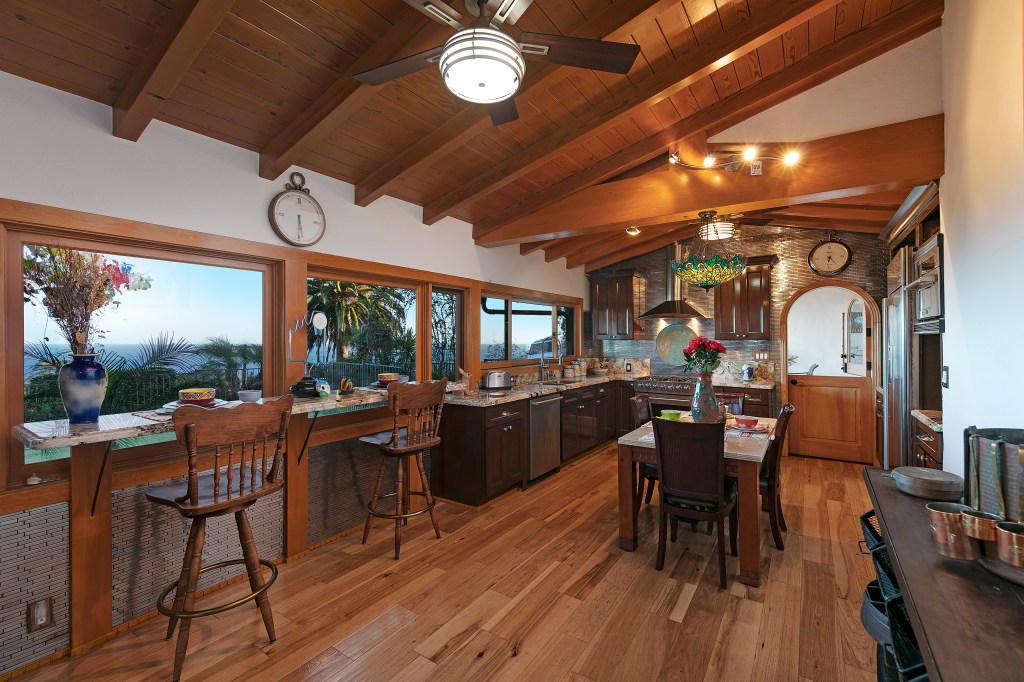 While “panoramic view” may be one of the most overused phrases in real estate parlance, this one truly deserves the description. The vista spans the entire coastline all the way south to Point Mugu on the way to Malibu, and north past the majesty of the Channel Islands, along the Gaviota Coast to Point Conception, I’m told that on a clear night, even the lights of the Santa Monica pier are visible. No power lines or houses break the line of sight, so the view truly is unobstructed. And it is breathtaking.