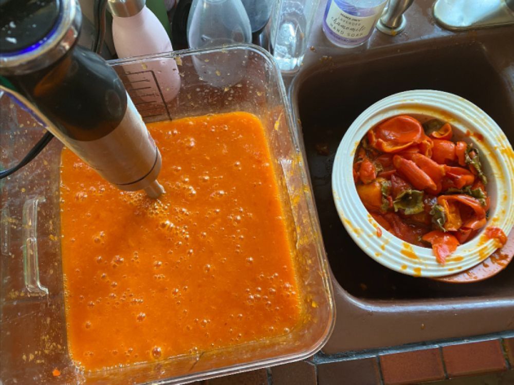 - Making my annual persimmon-orange-pepper, a k a “POP,” sauce. Every year, more people hit me with their persimmons. I made two batches this year: one with the Vietnamese Black Cobra chilis, the other with orange Thai chilis. Both quite hot.