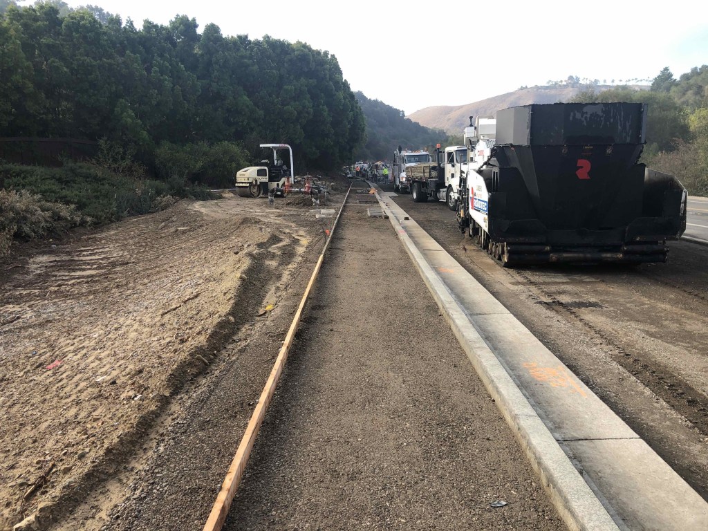 For the first few months of construction, bicycles, cars, and trucks will have to share Las Positas just after the Cliff Drive turn. Road speeds are reduced to 35 mph through the traffic zone, vehicles are asked to watch out for bicyclists, and traffic will be shifted to give crews room to work safely.