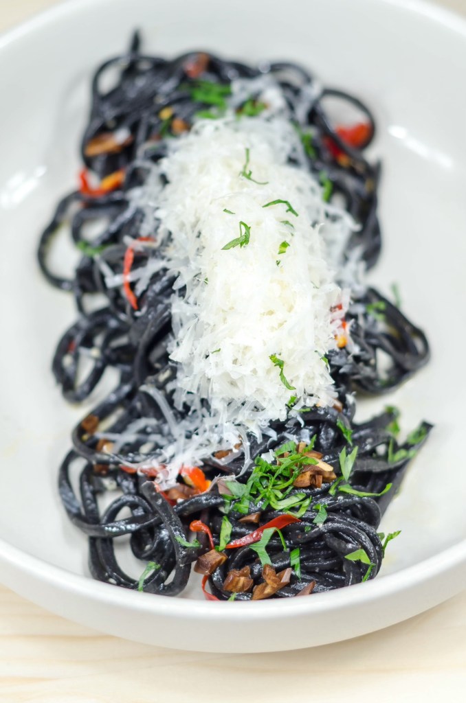 Washing it down was the schiava, a grape I’d had a few times before, but rarely in such a brisk style, no doubt due to its high elevation, lakeside provenance. Its fresh red fruit character countered the richness of the buttery dish, and its herbal tones matched expertly with the spinach core. As encouraged, I posted a pic of my dinner to the @aperitivo_SB page on Instagram, in hopes of earning an upgrade on next week’s squid ink pasta offering from Campania, to be served with a white falanghina wine from the warm region.