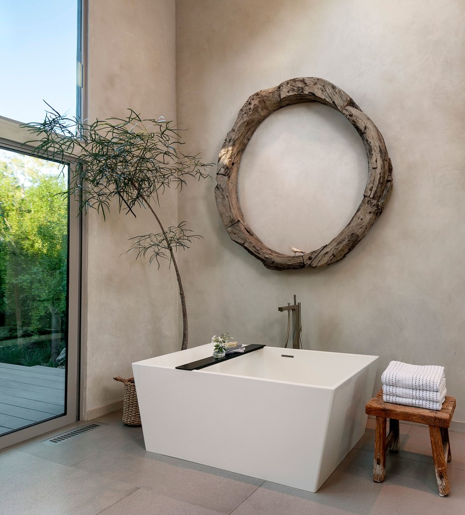 “Here’s where I really had fun with it,” said Barbara about the master bath, which sports his-and-hers sinks, a large walk-in closet, separate shower and tub, private toilet, and a sliding glass door to a deck and outdoor shower surrounded by a hedge of physocarpus. “[General contractor] Giffin & Crane understood that we wanted to go modern, but not too modern,” she remembered.