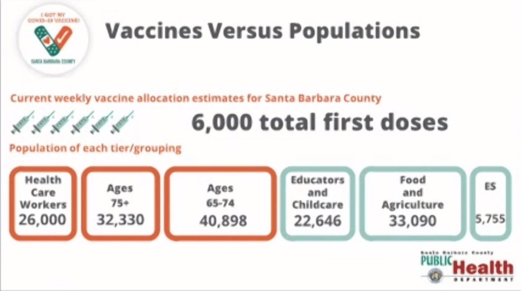 Santa Barbara County has lagged in getting this group vaccinated, so far only vaccinating health-care workers and those 75 and older, while other counties in the state were able to vaccinate those 65 and older.