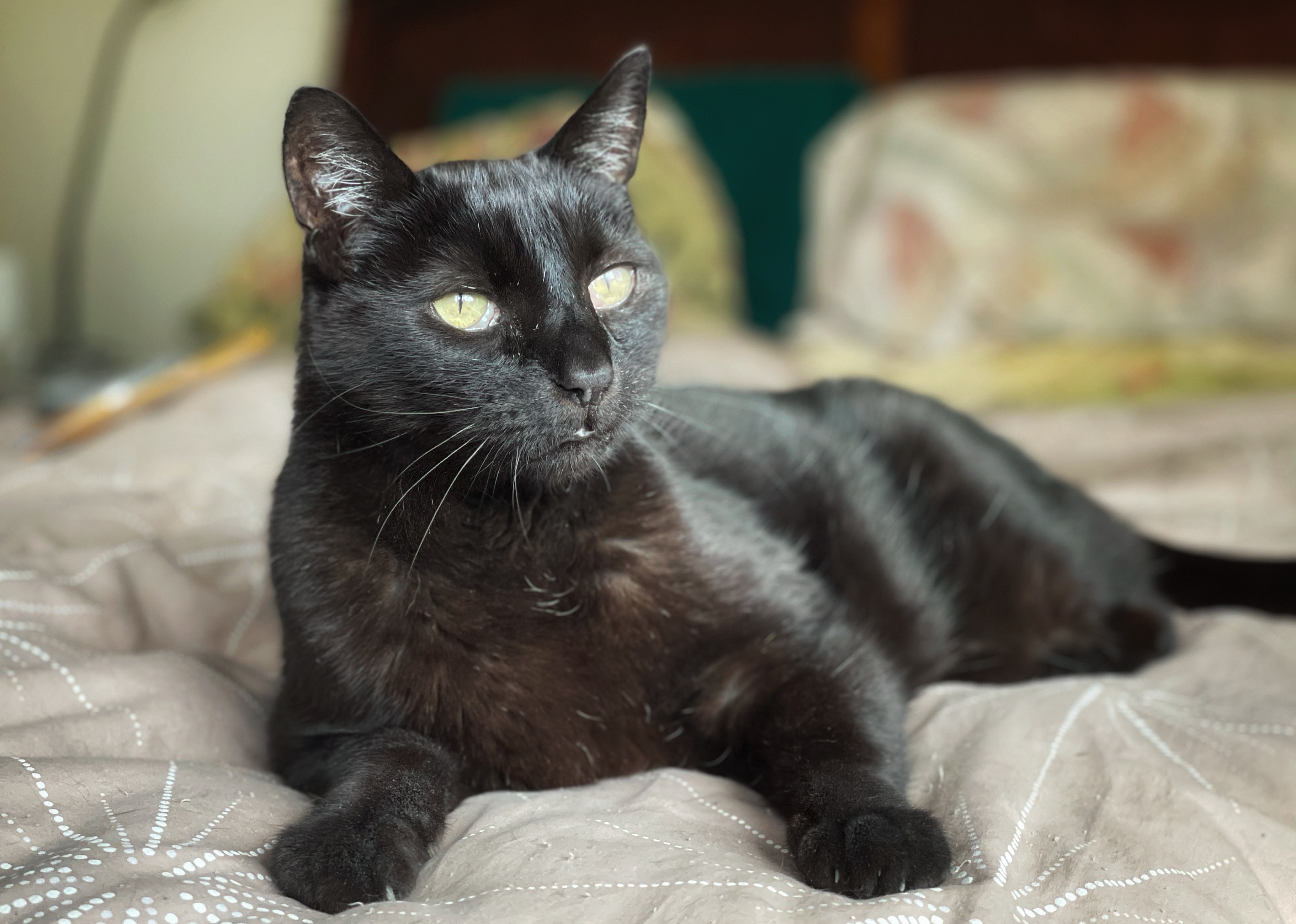About 14 years ago, the feline brothers now known as Pants and Cap’n were found in the trunk of a car in downtown Los Angeles by Dr. Jessica Cooper Dreifuss, today the wife of our staff photographer, Daniel Dreifuss. “Pants is the sweetest kitty,” said Dreifuss, who fears his feline friend isn’t long for this world. “He loves people and will be happy to meow until you pet him or give him belly rubs. He likes to lie in the sun to get a tan and chases strings.” Pants is an early riser, expecting treats by 6 a.m., and likes to play “headbutt paw,” in which he headbutts people and then places his paw on them until they pay attention. “Pants loves to play with strings and will graciously attack strings, cords, and shoelaces,” said Dreifuss. “He will often sit in the kitchen window to look outside and sleep in a ball on your lap, especially if you are trying to do work.”
