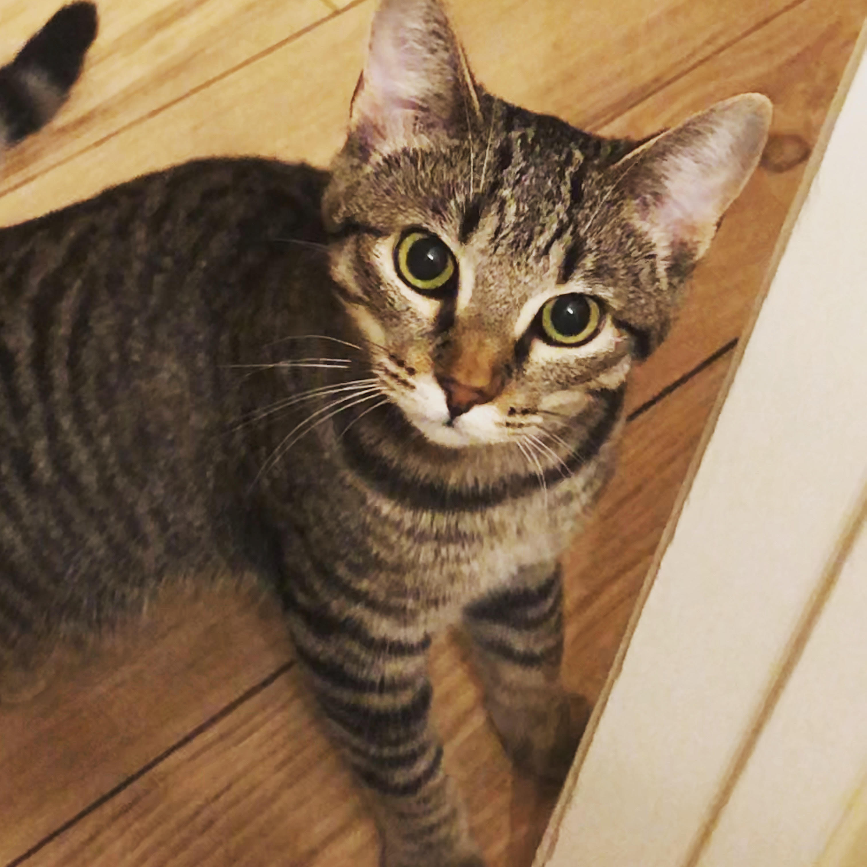 Zazou (my mother’s nickname in France) literally showed up at our front door last February. We were leaving for a trip in early March, so my friend fed her in our absence. She stayed, got pregnant, and gave birth to five kittens. We were able to adopt out four to family members. We kept the tabby, Momo, short for Mohammed.