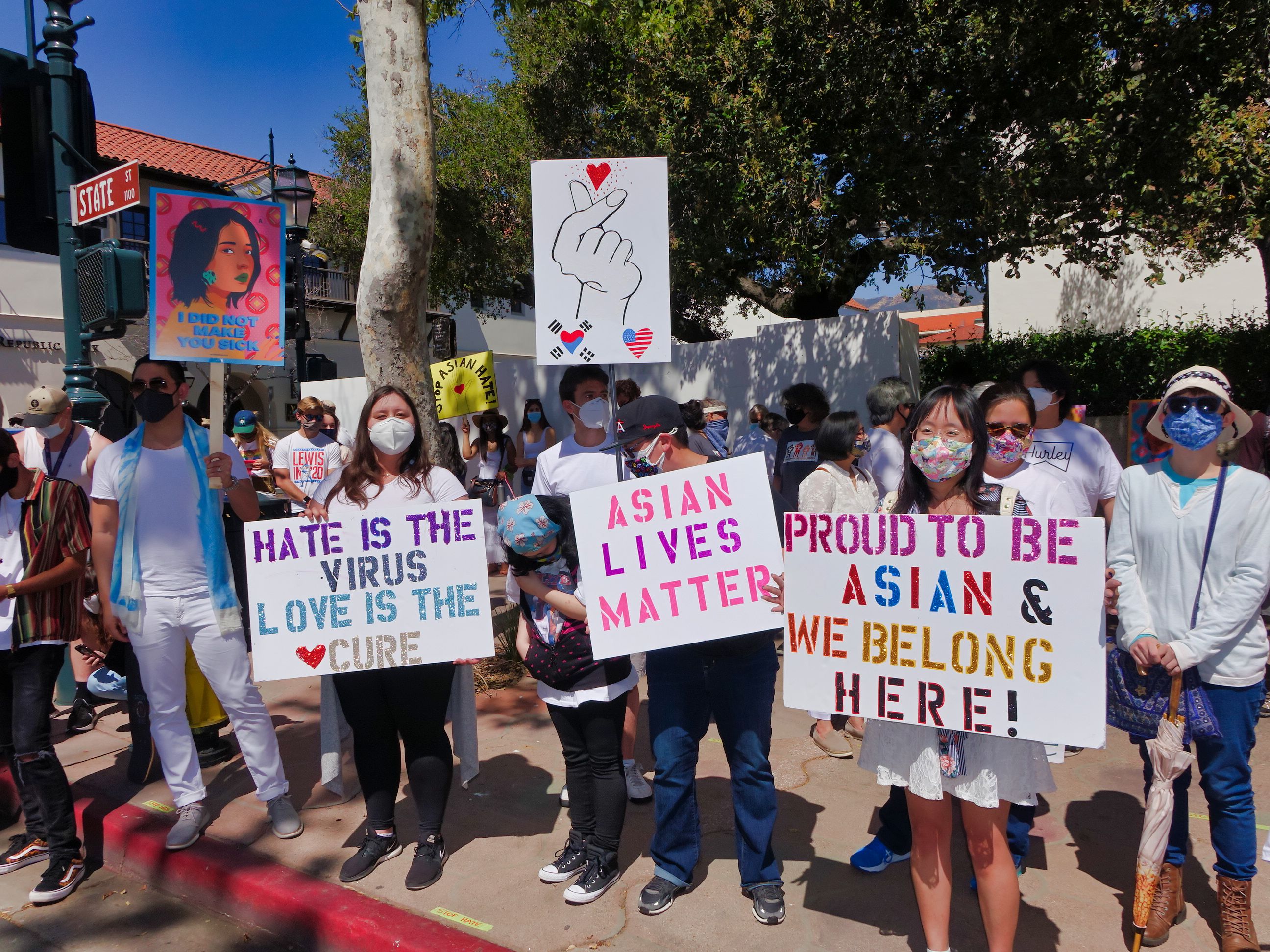 Local residents Karena Jew, Sharon Hoshida, Juliet Velarde Betita, Judy Guillermo-Newton and Michal Lynch organized a gathering in solidarity with Asians, Asian Americans, and Pacific Islanders on Saturday, March 27 in front of the Santa Barbara Museum of Art. Nearly 300 people turned out, many of them residents from the Asian-American community who play vital roles in Santa Barbara.