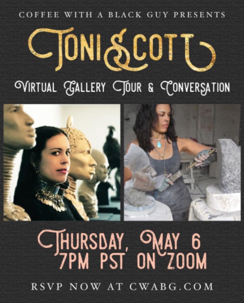 Join UCSB Alum and 2018 Artist in Residence fellow Toni Scott in conversation with Coffee with a Black Guy’s James Joyce on May 6, 2021 at 7pm pst on Zoom. Mixed-media artist, Toni Scott, will provide a virtual gallery tour and discuss the powerful stories presented through her work including installations, photography, multi-media, painting and sculpture. Scott states, “In every work, I create resides a commitment to themes that build and enrich humanity.”