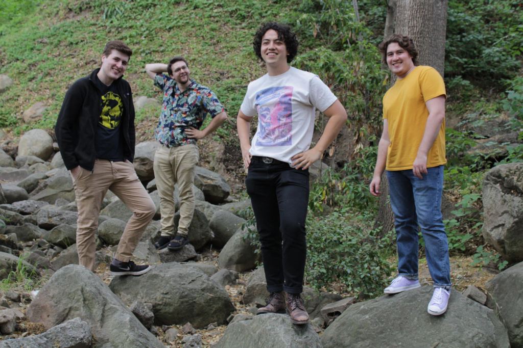 Friends since attending elementary at the Open Alternative School in Santa Barbara, the four — all former SBCC students, and three of four attending UCSB — started playing classic rock cover songs together about five years ago. “Eventually, after grinding cover song after cover song into the ground, we took to writing our own original tunes,” said Zheng, who plays lead guitar and keyboards; Hernandez-Black handles lead vocals and banjo, while Malcolm plays bass and Cedric bangs the drums.
