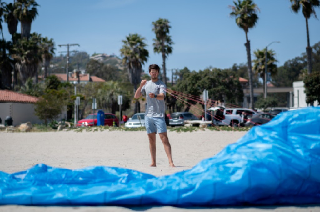 The sight of kiteboarders off Leadbetter Beach stoked Heffernan’s interest. “The guidance of locals helped get me going,” he said. The activity appealed to his desire for speed, as well as his interest in cutting-edge technology.