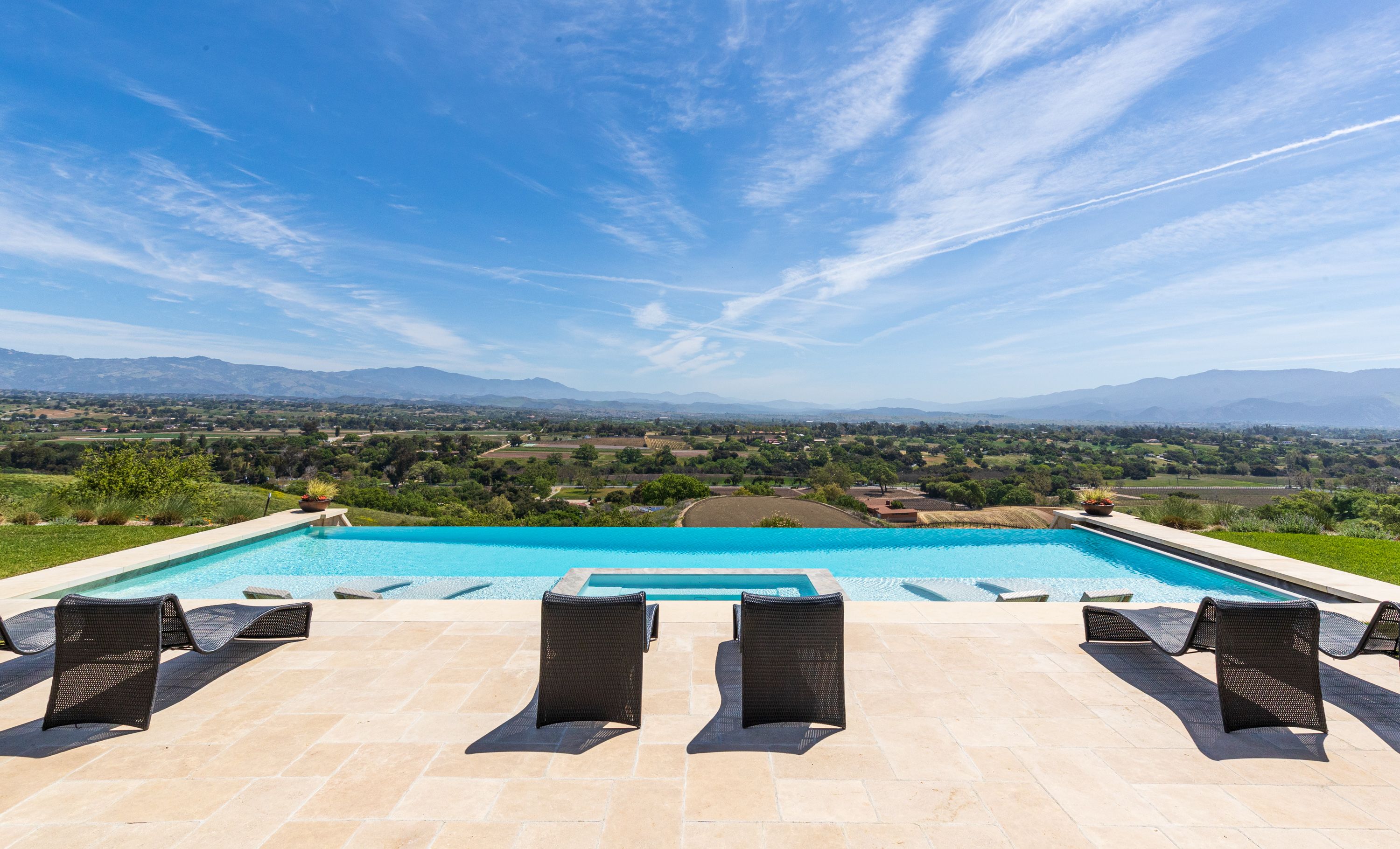 I’m not a wine drinker, but I am a sunshine and view lover. It is no surprise, therefore, that the sparkling infinity pool with a 360-degree view is what first enticed me to the Santa Ynez Valley on a Tuesday morning to visit the estate at 2111 Random Oaks Road.