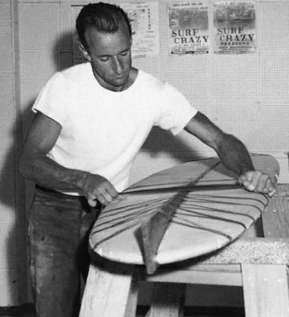 Born in Los Angeles in 1932, Yater has been “doing stuff with surfboards since I was in diapers.” His first board was a used 10-foot wooden plank weighing over 75 pounds, ridden in the shorebreak at Doheny State Park when there were roughly 100 surfers in the entire state. In the 1950s, Yater was an early employee of Hobie Alter and, later, Dale Velzy, two of biggest — and the first — commercial surfboard builders in the United States.
