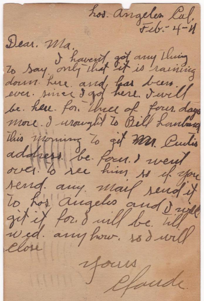 Fortunately, both sons survived the war and the 1918-1919 flu pandemic. One of the sons — Claude Reily — the author of the postcard, later opened an ironwork shop at 423 North Salsipuedes. His father managed the shop.