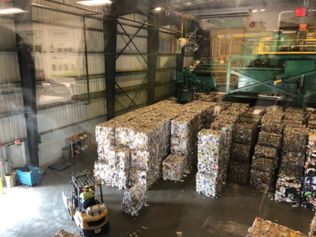 Plastics are considered among the worst of modern products now, Johnston said, pointing out bales of thin-film plastics on the ReSource Center floor destined for the landfill. They baled them to make sure none got caught in the wind and sailed out to sea. When they sold the plastics, they tried to find buyers and remanufacturers in California. Number 1 plastics reappear in grocery stores as clamshell berry boxes made in California, for instance, and number 2 plastics are currently reprocessed into detergent bottles.