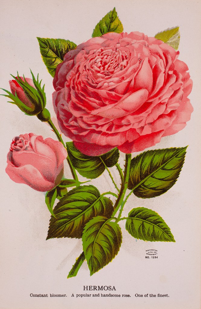 The art in these catalogs is often highly elaborate. In 17th-century catalogs such as the Florilegium of Dutch nurseryman Emanuel Sweert (1552-1612), plants are usually etched side by side in intricate black-and-white detail. By the 19th century, nearly all of the catalogs were hand-painted or later printed in bright colors. Images are often accompanied by prose at the intersection between scientific fact and religious faith. In one such description, British gardener and naturalist George Loddiges (1784/1786-1846) writes of the Chinese Hibiscus that “its blossoms are beautiful, and give us another instance of the goodness of our gracious Creator.”